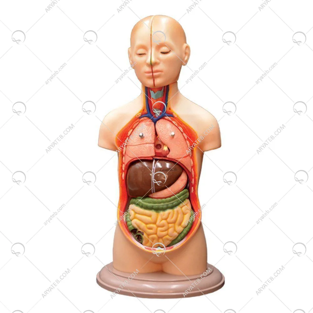 مدل تنه انسان آموزشی دارای جزئیات پیچیده و ویژگی های پیشرفته شبیه به زندگی است. طراحی بسیار دقیق آن شامل نای، آئورت، ورید اجوف و ورید اجوف فوقانی و تحتانی و همچنین دهان، بینی و کره چشم است. علاوه بر این، مولاژ نیم تنه انسان 10 قسمتی با قابلیت جداشدن سر دارای قسمت های رنگی است که شناسایی را آسان تر می کند، مانند مواردی که در داخل تنه و اندام های تولید مثل یافت می شود. پایه همراه آن، نمایش آن را آسان می کند و به آن اجازه می دهد تا به بخشی دائمی از هر اتاق تبدیل شود، تا سال ها مورد تحسین و مطالعه قرار گیرد.
