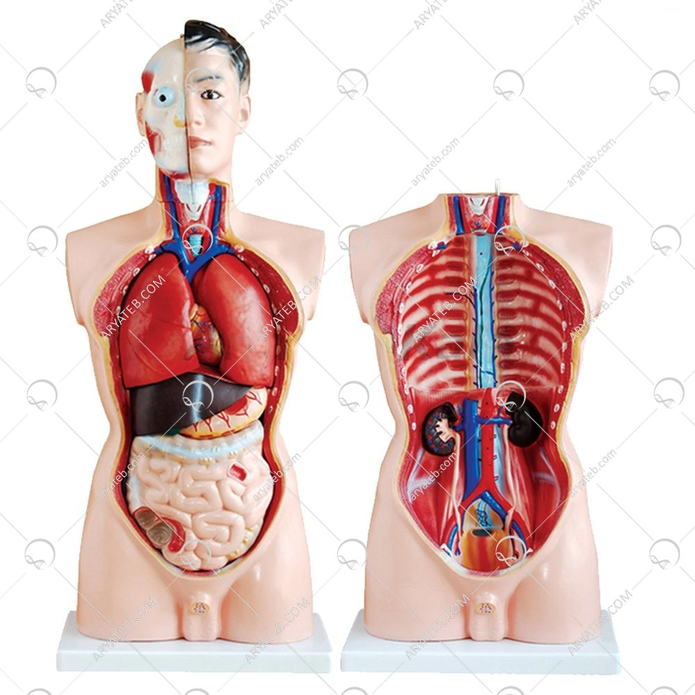 ساختار آناتومیک: نمایش دقیق اندامها، عضلات، و احشا مانند قلب، ریهها، کبد، معده و سیستم گوارش. این ساختارها معمولاً بهگونهای طراحی شدهاند که امکان مشاهده و یادگیری جزئیات آناتومی را فراهم کنند.