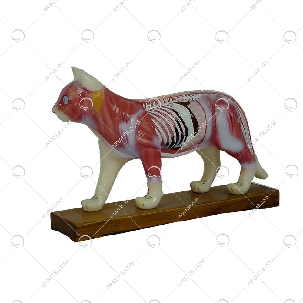 مولاژ گربه شامل نمایش ماهیچه ها، استخوان بندی و اعضای داخلی بدن گربه ها به صورت دقیق است. این مولاژ دارای 10 قسمت است و هر قسمت به راحتی جدا شده و مجدد میتوان آن را در جای خود قرار داد.