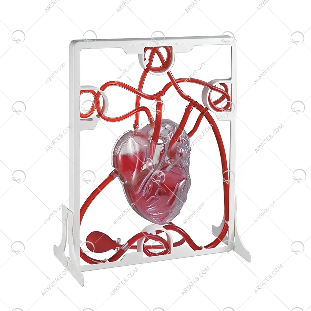 پمپ دستی: یک پمپ دستی در این مولاژ تعبیه شده که به کاربر اجازه میدهد نحوه گردش خون را به صورت مکانیکی شبیهسازی کند. با فشار دادن پمپ، مایعی شبیه به خون (رنگ قرمز شبیهساز) در حفرههای قلب و عروق جریان پیدا میکند و چرخه طبیعی قلب را نشان میدهد.