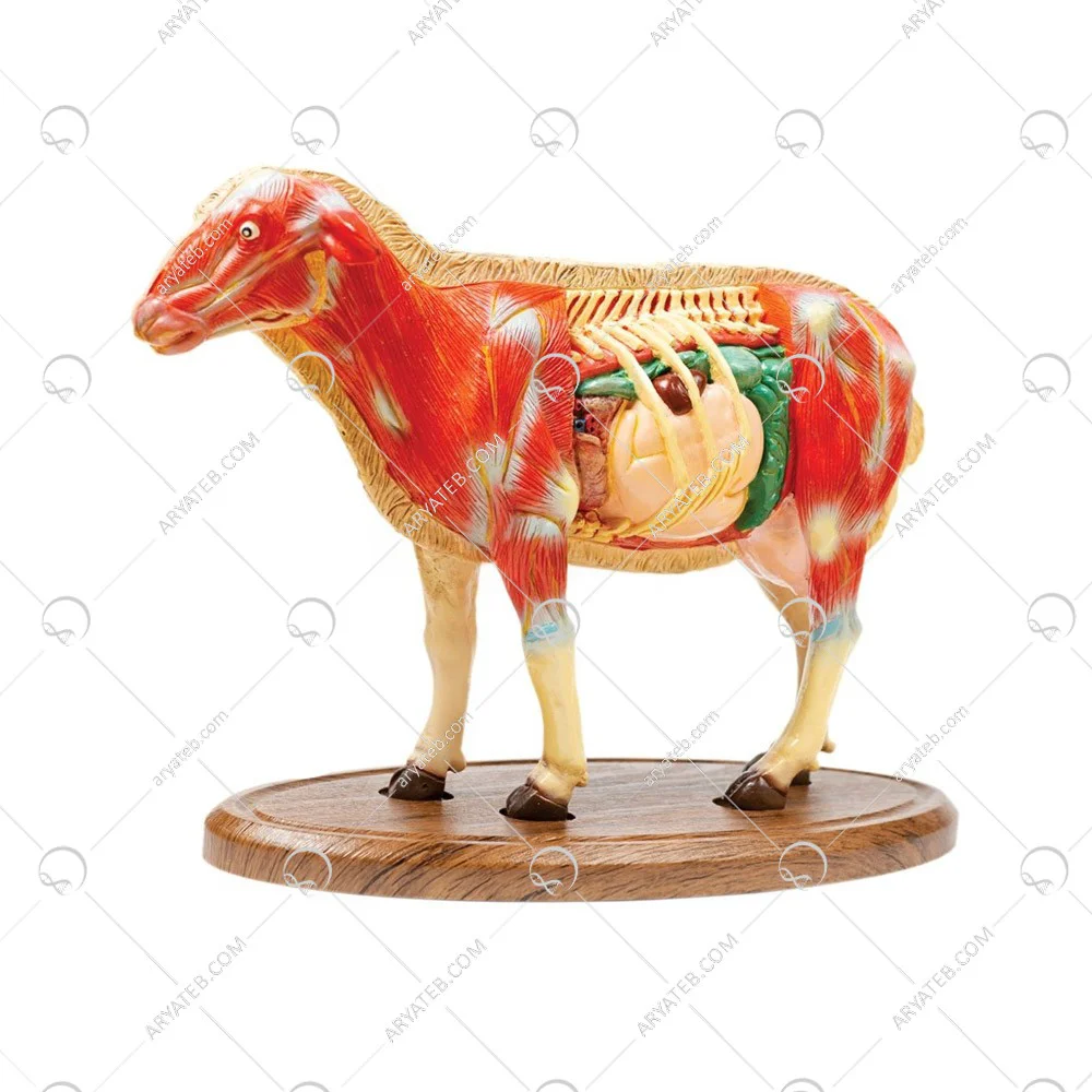 این مولاژ معمولاً شامل اجزای اصلی مانند اسکلت، عضلات، اندامهای داخلی (مانند کبد، رودهها و قلب) و همچنین سیستم تولید مثل است. طراحی آن بهگونهای است که اجزای مختلف بهوضوح قابل مشاهده باشند و امکان یادگیری دقیق را فراهم کنند.