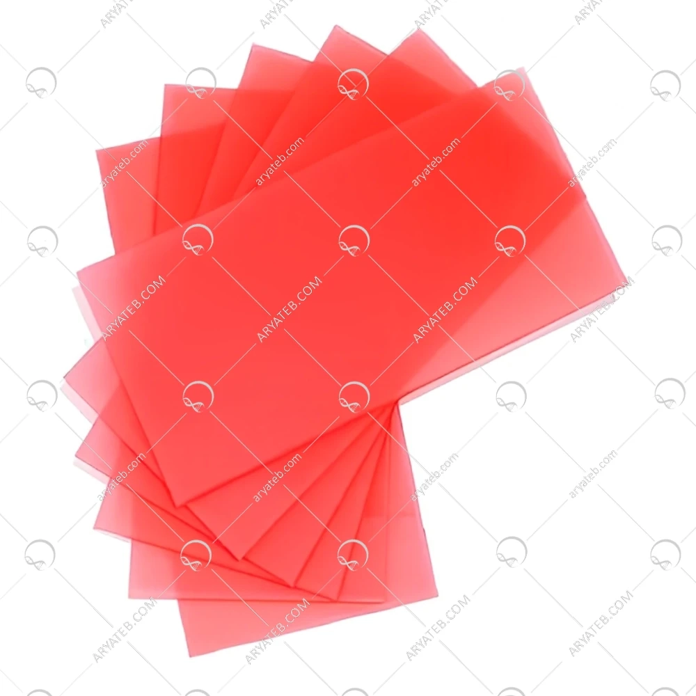 موم قالبگیری ثبت بایت Rogson به صورت ورقههای مستطیلی نازک با ابعاد حدود 7×10 سانتیمتر و ضخامت 1-2 میلیمتر عرضه میشود. رنگ قرمز آن شناسایی و ثبت جزئیات را آسانتر میکند. بافت موم در حالت گرم نرم و انعطافپذیر است، که امکان شکلدهی دقیق را فراهم میکند. پس از خنک شدن، موم سفت شده و شکل قالب را حفظ میکند، که ظاهر حرفهای و کاربردی به آن میبخشد.