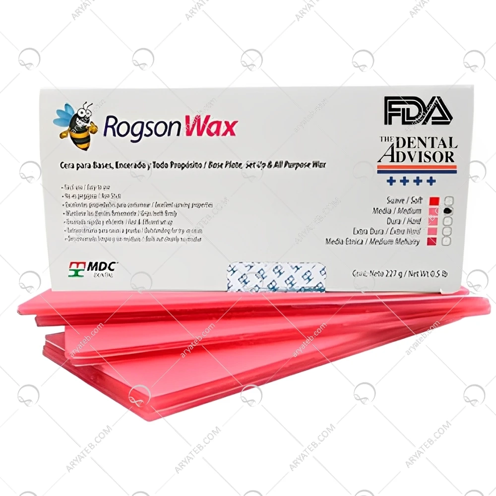 موم قالبگیری ثبت بایت Rogson از ترکیبات مصنوعی مانند موم پارافین و رزینها ساخته شده که پایداری و انعطافپذیری بیشتری نسبت به مومهای طبیعی دارند. در مقایسه با برندهای دیگر، Rogson از رزینهای پیشرفتهتر برای بهبود انعطاف و سهولت استفاده بهره میبرد. رنگ قرمز آن در مقابل رنگهای متنوع برخی رقبا، به شناسایی آسانتر کمک میکند. عدم استفاده از افزودنیهای حساسیتزا، ایمنی آن را برای بیماران افزایش میدهد.