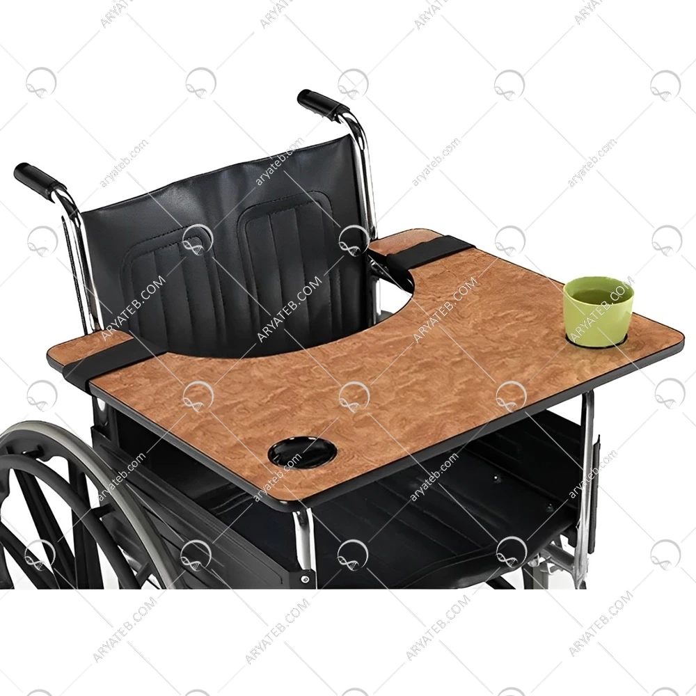 میزهای قابل نصب روی ویلچر: این نوع میزها به صورت مستقیم روی ویلچر نصب میشوند و معمولاً دارای قابلیت تنظیم ارتفاع و زاویه هستند.