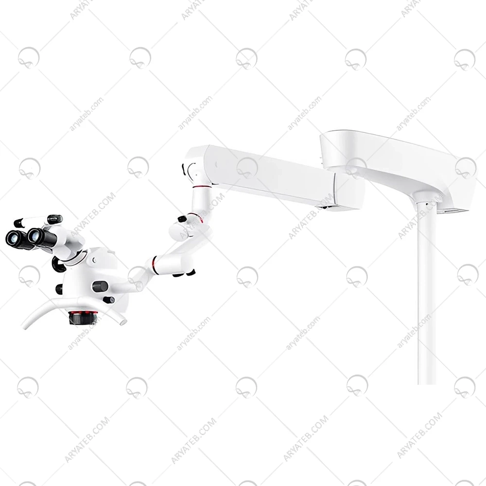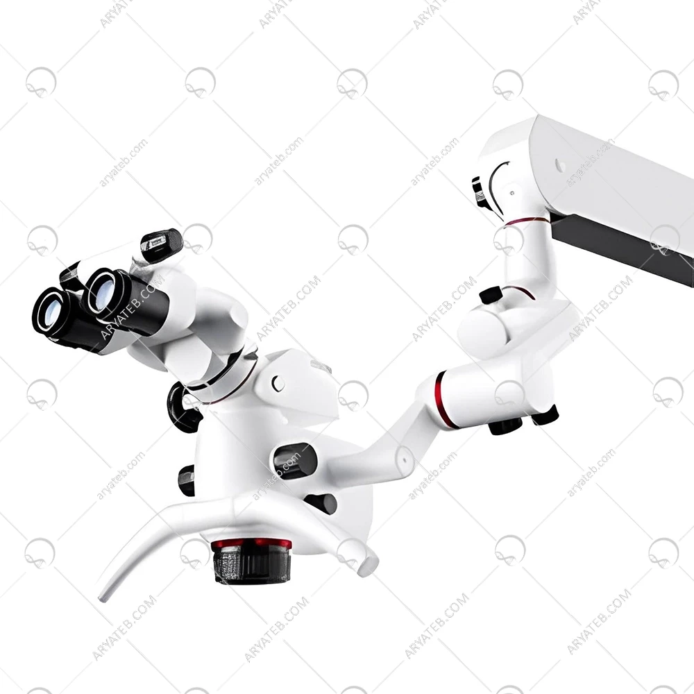 بازوی تعادل (Balance Arm): یک بازوی مفصلی که به سر میکروسکوپ متصل است و به دندانپزشک امکان میدهد تا میکروسکوپ را به آرامی و بدون زحمت در موقعیتهای مختلف جابجا کند و در همان موقعیت ثابت نگه دارد. این بازو به گونهای طراحی شده که وزن میکروسکوپ را متعادل کند.
