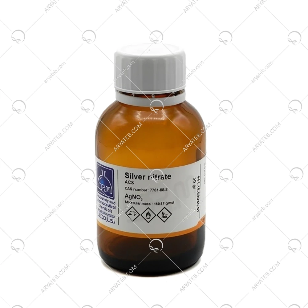 نیترات نقره یا سیلور نیترات یک ترکیب معدنی با فرمول شیمیایی AgNO3 است که بهصورت کریستالهای بیرنگ یا پودر سفید عرضه میشود. این ماده به دلیل خواص ضدعفونیکننده، اکسیدکننده قوی و حساسیت کم به نور (در مقایسه با سایر هالیدهای نقره) در کاربردهای متنوعی استفاده میشود. نیترات نقره ACS دکتر مجللی با گرید ACS (American Chemical Society) تولید میشود که نشاندهنده خلوص بالا و انطباق با استانداردهای بینالمللی برای استفاده در آزمایشهای دقیق و حساس است.