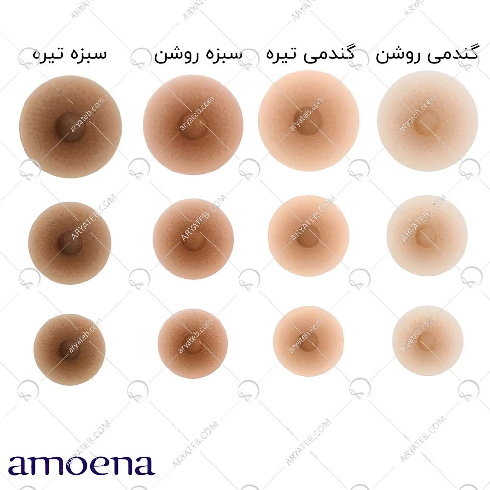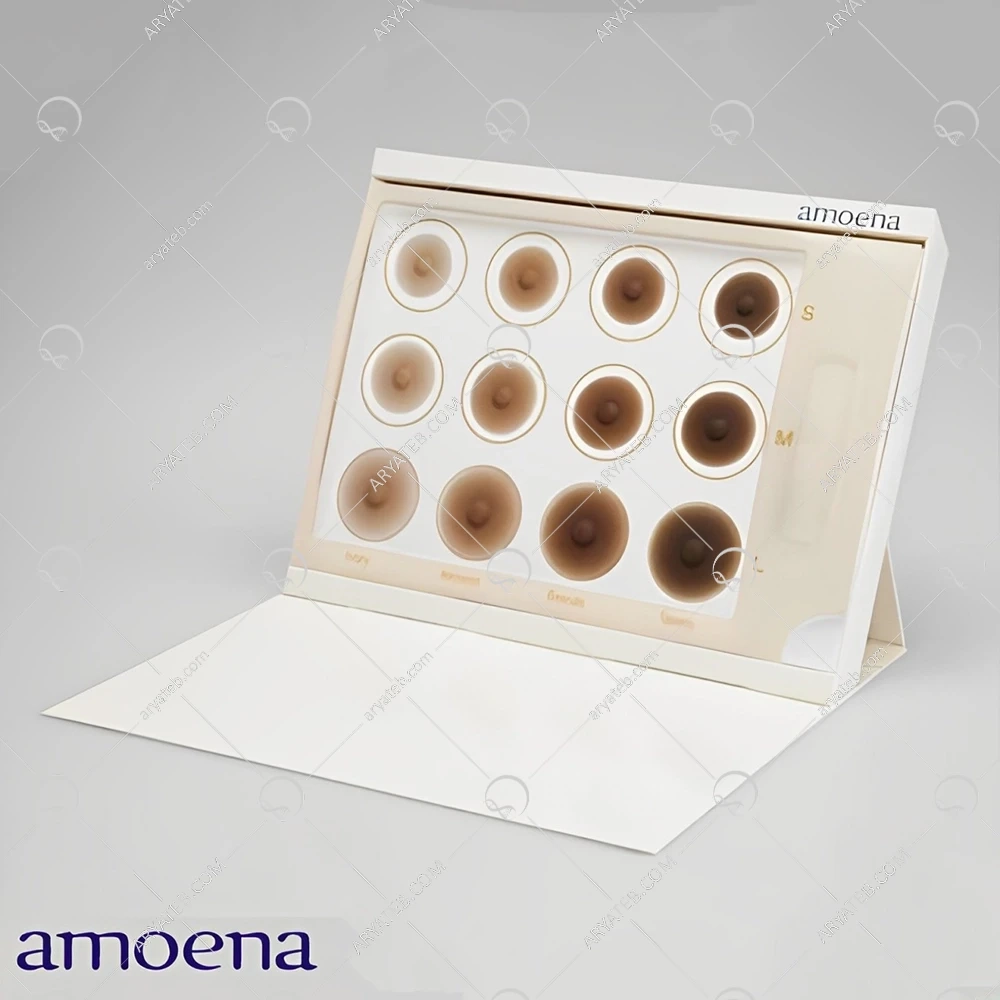 - تنوع در سایز و رنگ: نیپل اکسترنال آموئنا در سه سایز کوچک (3.4 سانتیمتر)، متوسط (3.9 سانتیمتر)، و بزرگ (4.9 سانتیمتر) عرضه میشود. همچنین، در چهار رنگ (سبزه تیره، سبزه روشن، گندمی روشن و گندمی تیره) موجود است تا با تناژهای مختلف پوست هماهنگی داشته باشد.