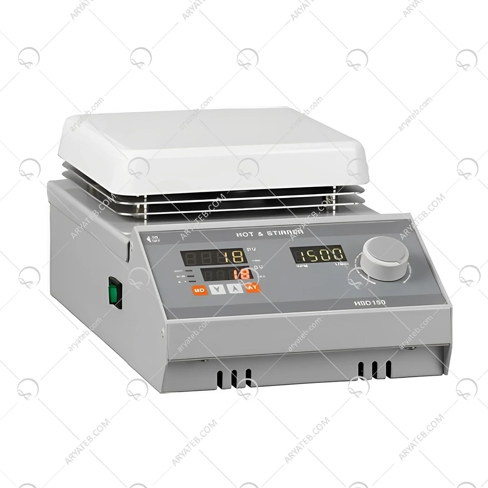 همزن مغناطیسی: در زیر صفحه گرمایش، یک آهنربا قرار دارد که با چرخش با سرعتهای مختلف، میلههای مغناطیسی کوچک داخل ظرف نمونه را به حرکت در میآورد و باعث هم زدن محلول میشود