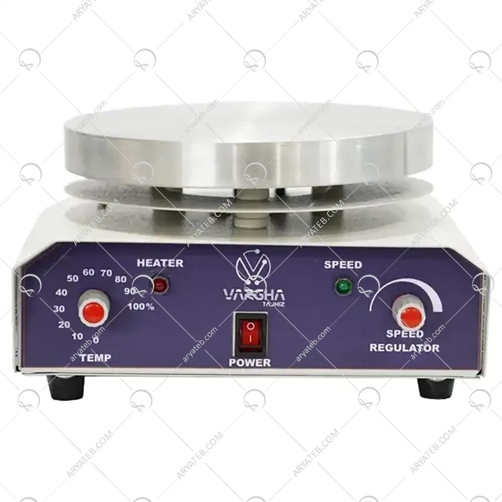 صفحه آلومینیومی: صفحه آلومینیومی به قطر 15 سانتیمتر، سطحی مناسب برای قرار دادن ظروف آزمایشگاهی فراهم میکند. آلومینیوم به دلیل هدایت حرارتی بالا، گرمای تولید شده را به طور یکنواخت به سطح منتقل کرده و از ایجاد نقاط داغ جلوگیری میکند.