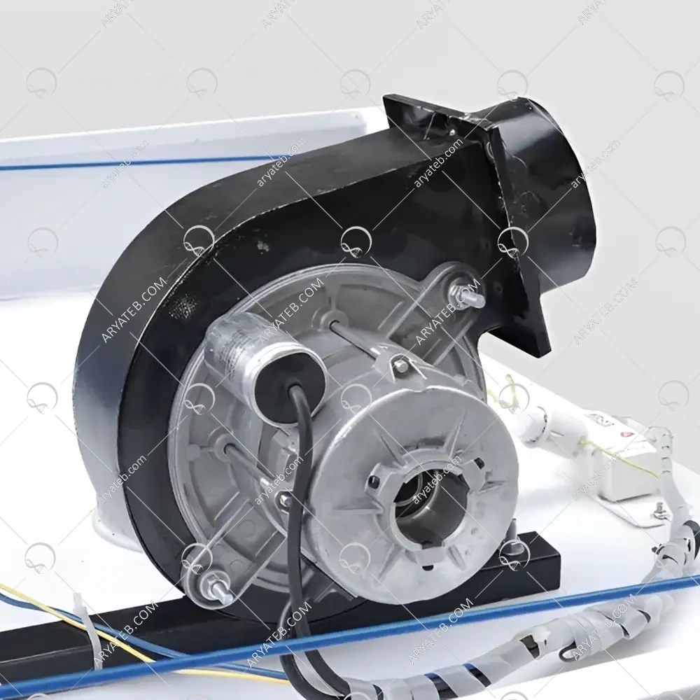 فن سانتریفیوژ قدرتمند: فن سانتریفیوژ با سرعت 2400 دور در دقیقه، جریان هوای قوی و یکنواختی را در داخل هود ایجاد میکند. این نوع فن، با ایجاد نیروی گریز از مرکز، هوا را به طور موثری مکش کرده و آلایندهها را به خارج از هود منتقل میکند. فنهای سانتریفیوژ برای سیستمهای کانالکشی شده با فشار بالا مناسب هستند و در محیطهایی با جریان هوای کثیف و دارای ناخالصی نیز عملکرد خوبی دارند.