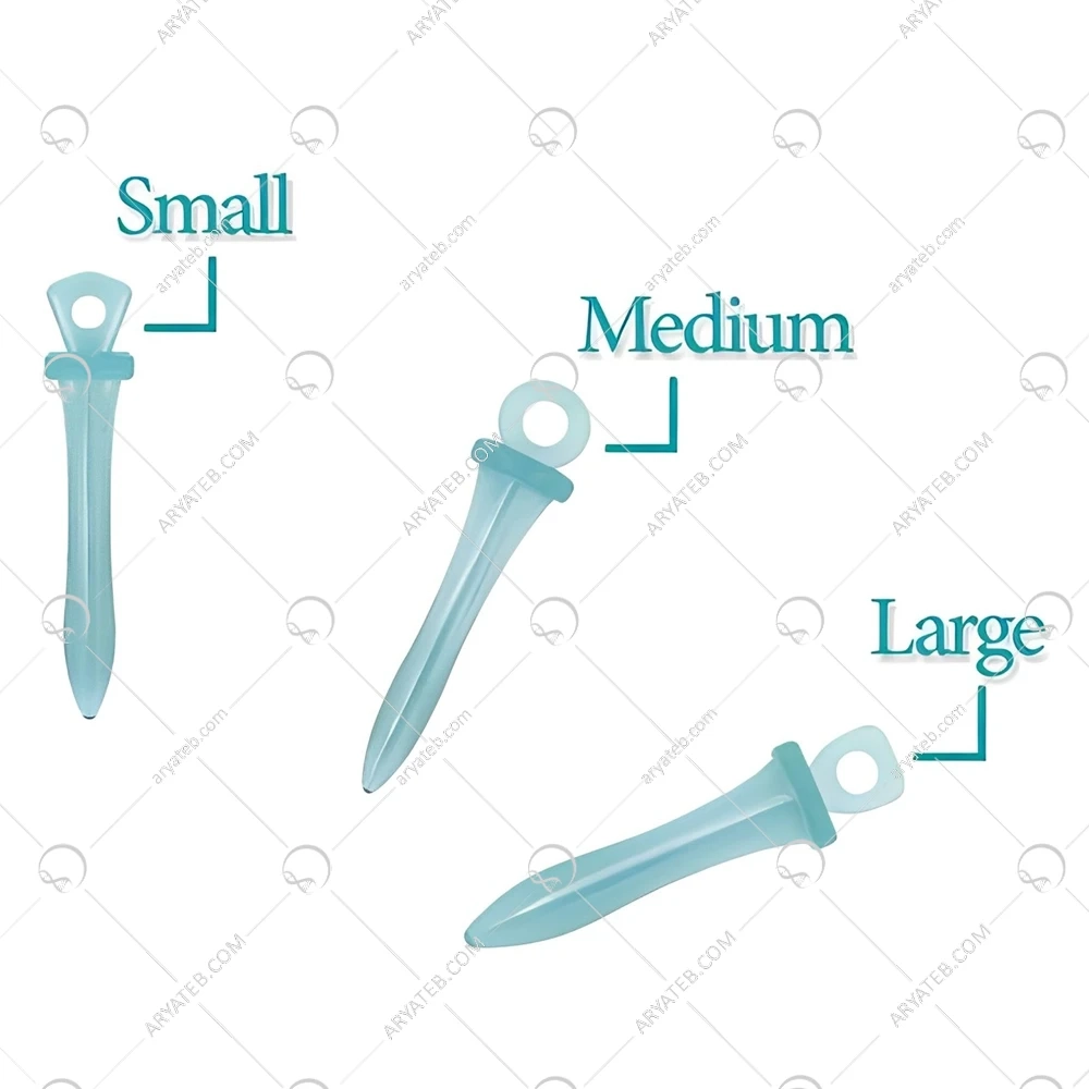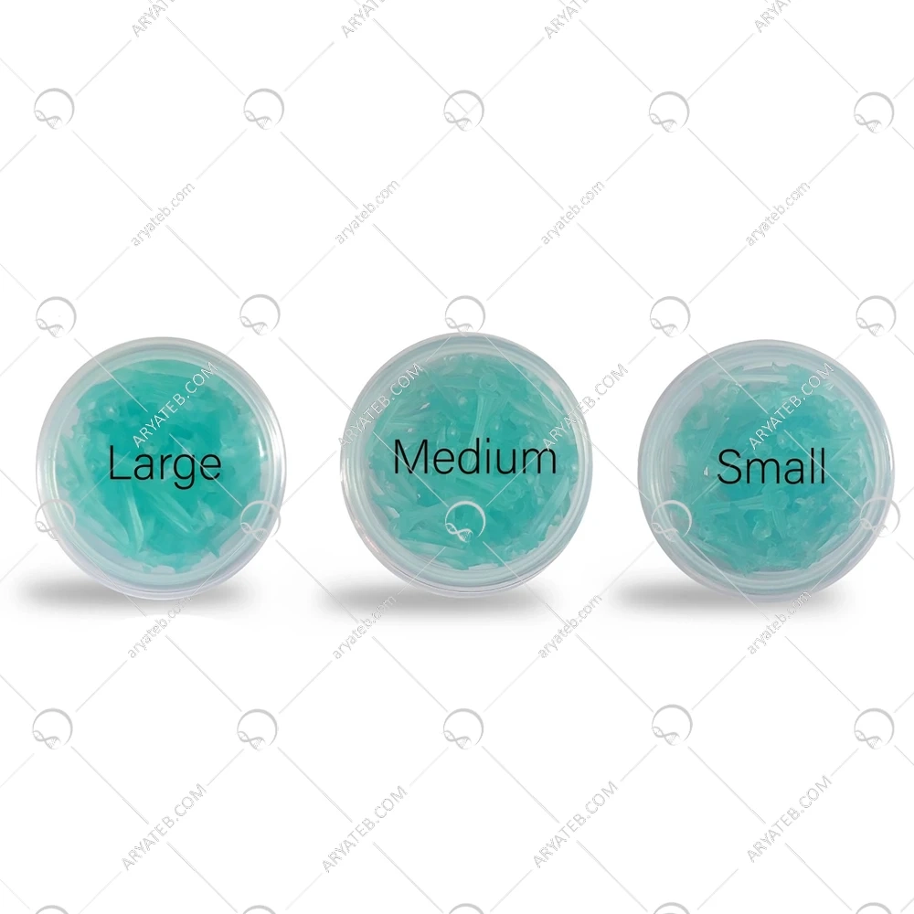 - خالی بودن قسمت زیرین وج(hollow) ، در ۳ سایز اسمال و مدیوم و لارج جهت سهولت انتخاب جهت درمان در فضای بین دندانی ، بسته های ۱۰۰ عددی