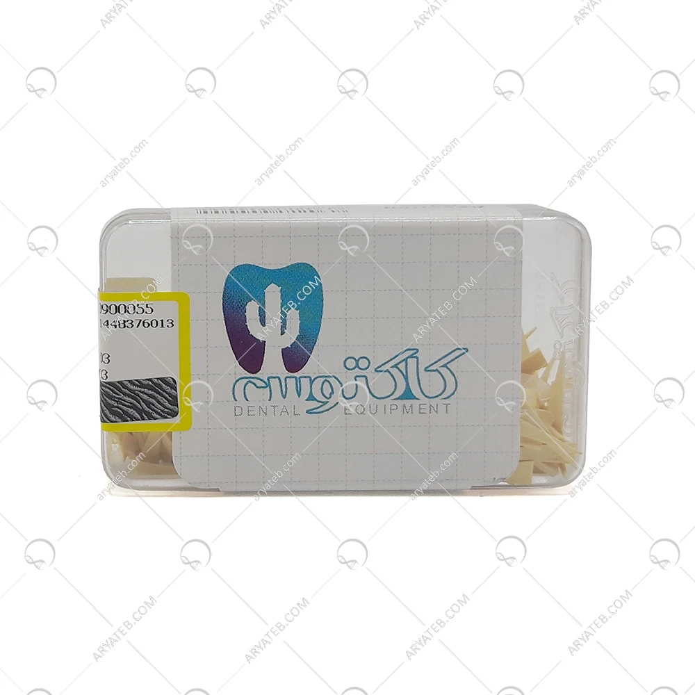 وج کاکتوس چوبی با کیفیت بالا. سطح آن نیز باید به گونه ای باشد که بتواند بدون حرکت در جای خود بماند. از وج کاکتوس چوبی نیز می توان در ترمیم آمالگام استفاده کرد. وج های چوبی معمولا در بسته های 500 تا 300 تایی فروخته می شوند.