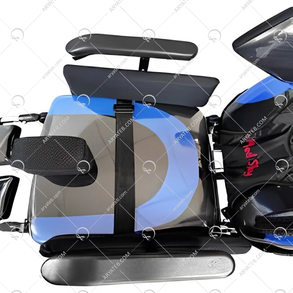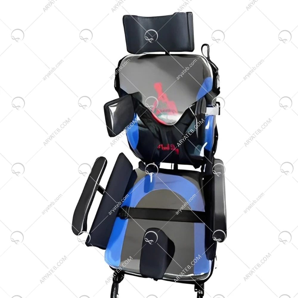 طراحی خاص برای فلج مغزی: این ویلچر با پدهای نگهدارنده در قسمتهای مختلف بدن، از جمله سر، گردن، پهلو، ران و بین پا، از جابجایی بیمورد و کج نشستن کاربر جلوگیری میکند. همچنین، پدهای پشت ساق پا به کنترل بهتر پاها کمک میکنند.