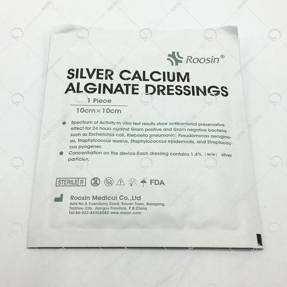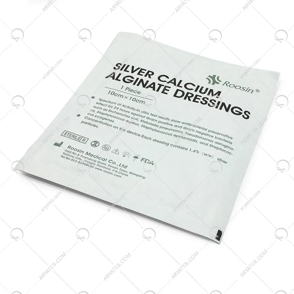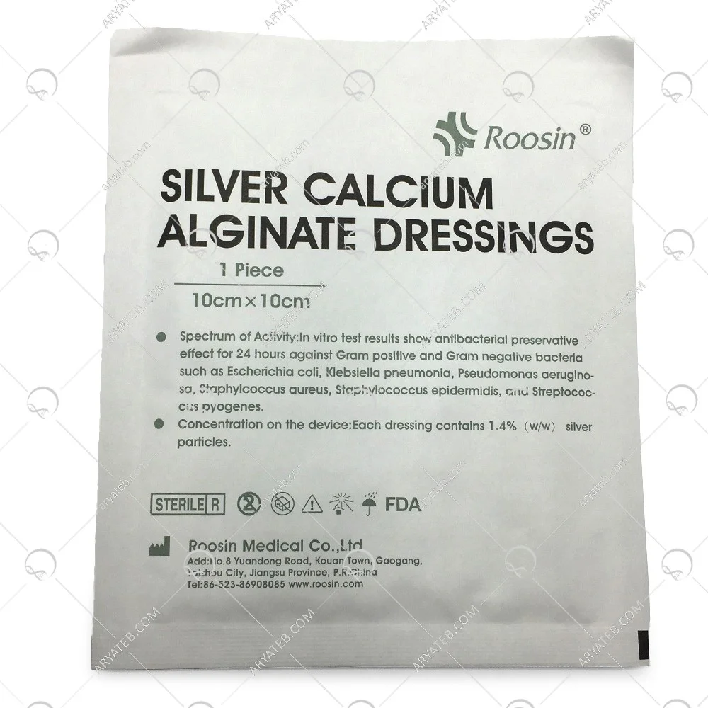 - پانسمان آلژینات نقره روزین ترکیبی از آلژینات کلسیم با افزودن یک کمپلکس یونی نقره استفاده میکند که یون های نقره را در حضور ترشحات زخم آزاد میکند.