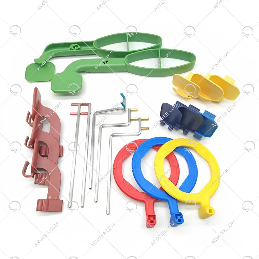 - (19 قطعه شامل): 11 عدد Bite Bloks ،3 عدد posterior زرد، 3 عدد Anterior آبی، 3 عدد Bite Wing قرمز، 2 عدد Endodontic سبز (3 عدد Aming Ring): 1 عدد Posterior زرد، 1 عدد Bite Wing قرمز، 1 عدد Anterior آبی (5 عدد بازو): 2 عدد Posterior زرد، 1 عدد Anterior آبی، 2 عدد Bite wing قرمز