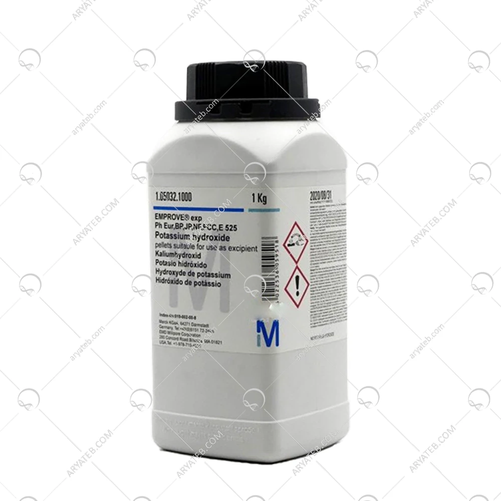 پتاسیم هیدروکسید یا پتاس یک ترکیب شیمیایی با فرمول شیمیایی KOH است. این ماده به صورت جامد سفید رنگ، بسیار خورنده و قلیایی است که به راحتی در آب حل میشود و محلول قلیایی قوی ایجاد میکند. پتاسیم هیدروکسید تولید شده توسط شرکت مرک آلمان، به دلیل کیفیت بالا و خلوص آن، یکی از پرکاربردترین انواع این ماده شیمیایی در صنایع مختلف است.