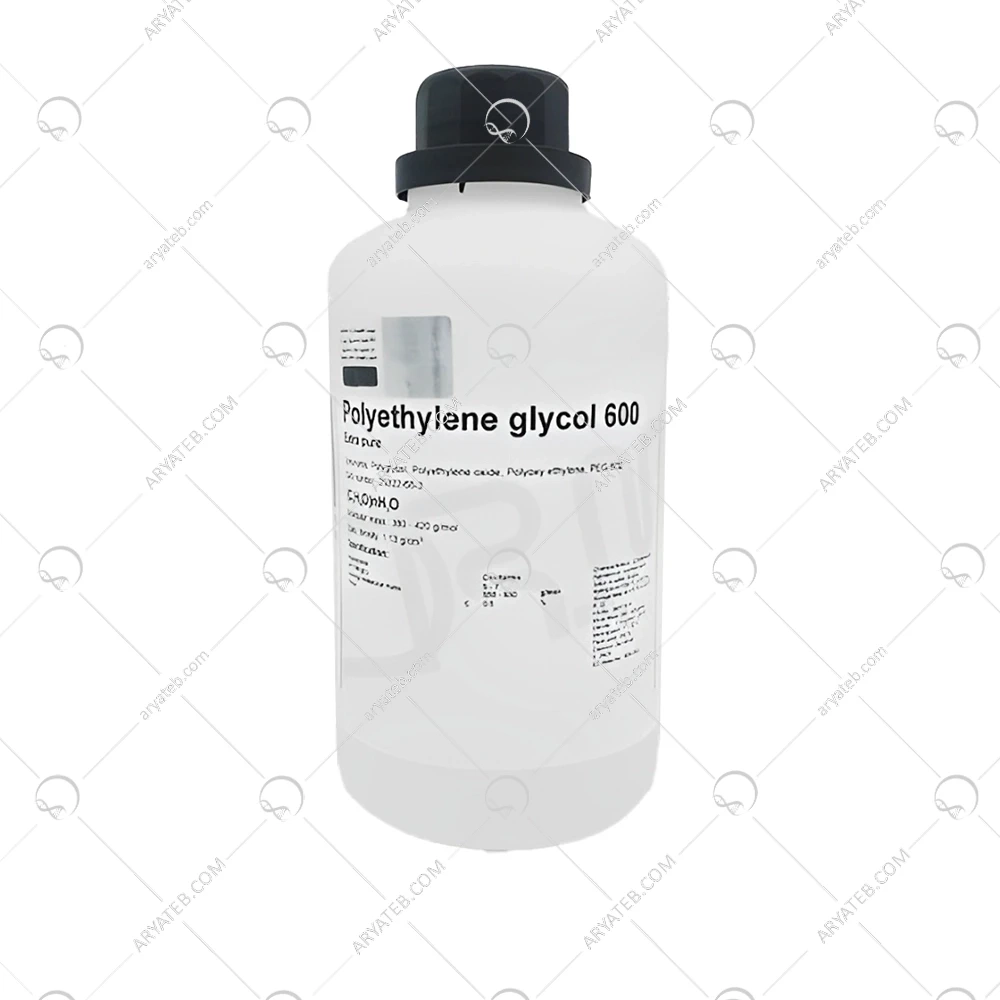 پلی اتیلن گلیکول (PEG) یک پلیمر خطی با فرمول شیمیایی H(OCH₂CH₂)nOH است که از واکنش اتیلن اکسید با آب یا مونو اتیلن گلیکول تولید میشود. عدد 600 در نام این محصول نشاندهنده وزن مولکولی متوسط آن است که آن را به یک مایع ویسکوز، بیرنگ و بیبو تبدیل میکند. گرید Extra Pure این محصول به معنای خلوص بالای آن است که برای کاربردهای حساس آزمایشگاهی و پزشکی مناسب میباشد.