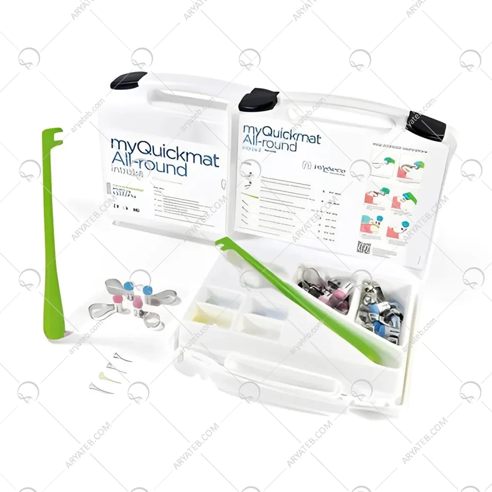 Polydentia- myQuickmat All round intro kit یک مجموعه کامل و کاربردی برای دندانپزشکان است که به آنها امکان میدهد ترمیمهای کامپوزیتی را با دقت و سرعت بیشتری انجام دهند. این پکیج شامل طیف گستردهای از ابزارها و ماتریسهای مورد نیاز برای انواع ترمیمهای خلفی دندان است.