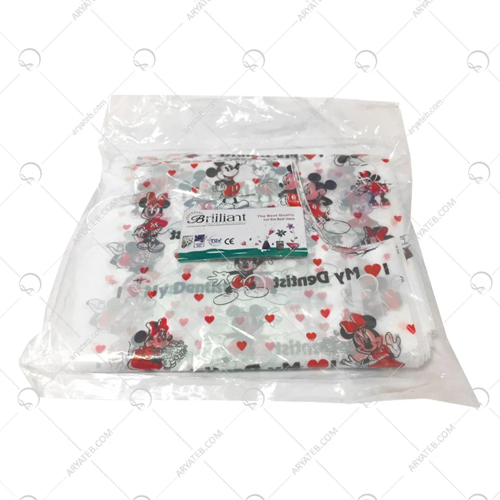 پیش بند دندانپزشکی اطفال برلیان که می تواند در خانه برای کارهایی مانند ماشین های نقاشی استفاده شود. این نوع پیشبندها یکبار مصرف هستند و باید پس از یک بار استفاده دور ریخته و با پیشبندهای جدید جایگزین شوند.