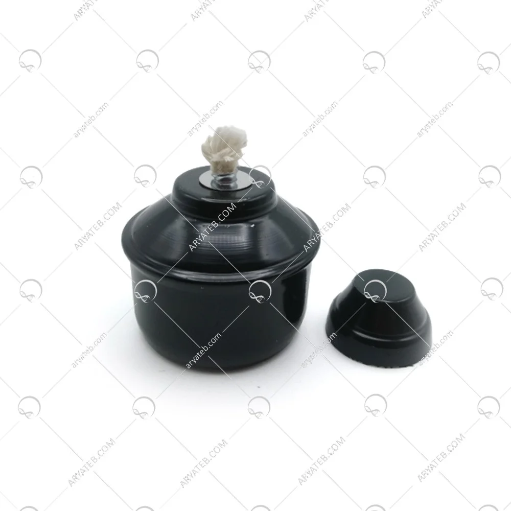 _این چراغ از سه قسمت تشکیل شده است که عبارتند از یک مشعل ، یک محفظه ی سوخت و یک پشتیبان که برای قرار دادن چراغ روی آن استفاده می شود .