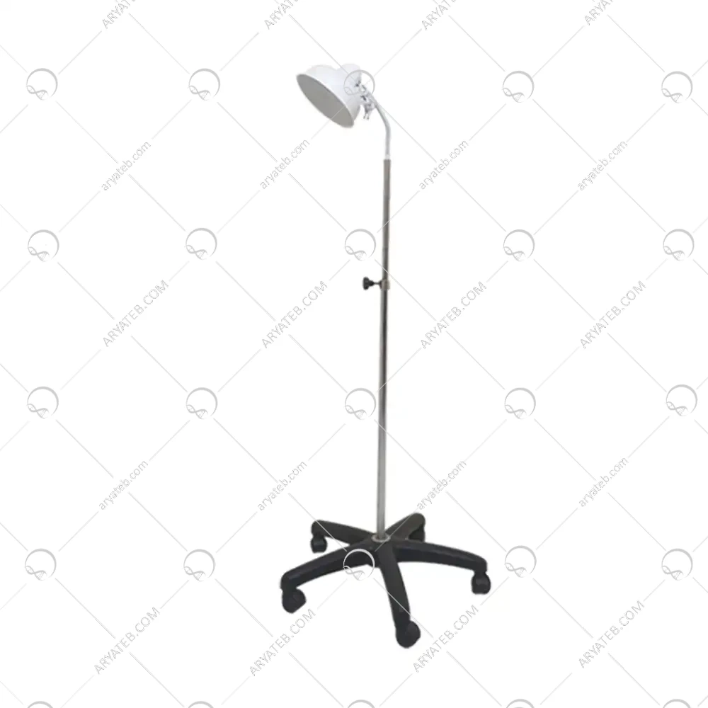 تنظیم ارتفاع: میله اصلی چراغ دارای مکانیزم تنظیم ارتفاع است که معمولاً توسط یک پیچ خروسکی یا گیره محکم میشود. این امکان به کاربر اجازه میدهد تا ارتفاع چراغ را متناسب با موقعیت معاینه (نشسته یا خوابیده) تنظیم کند. محدوده تنظیم ارتفاع معمولاً بین ۱۳۰ تا ۲۱۰ سانتیمتر است.