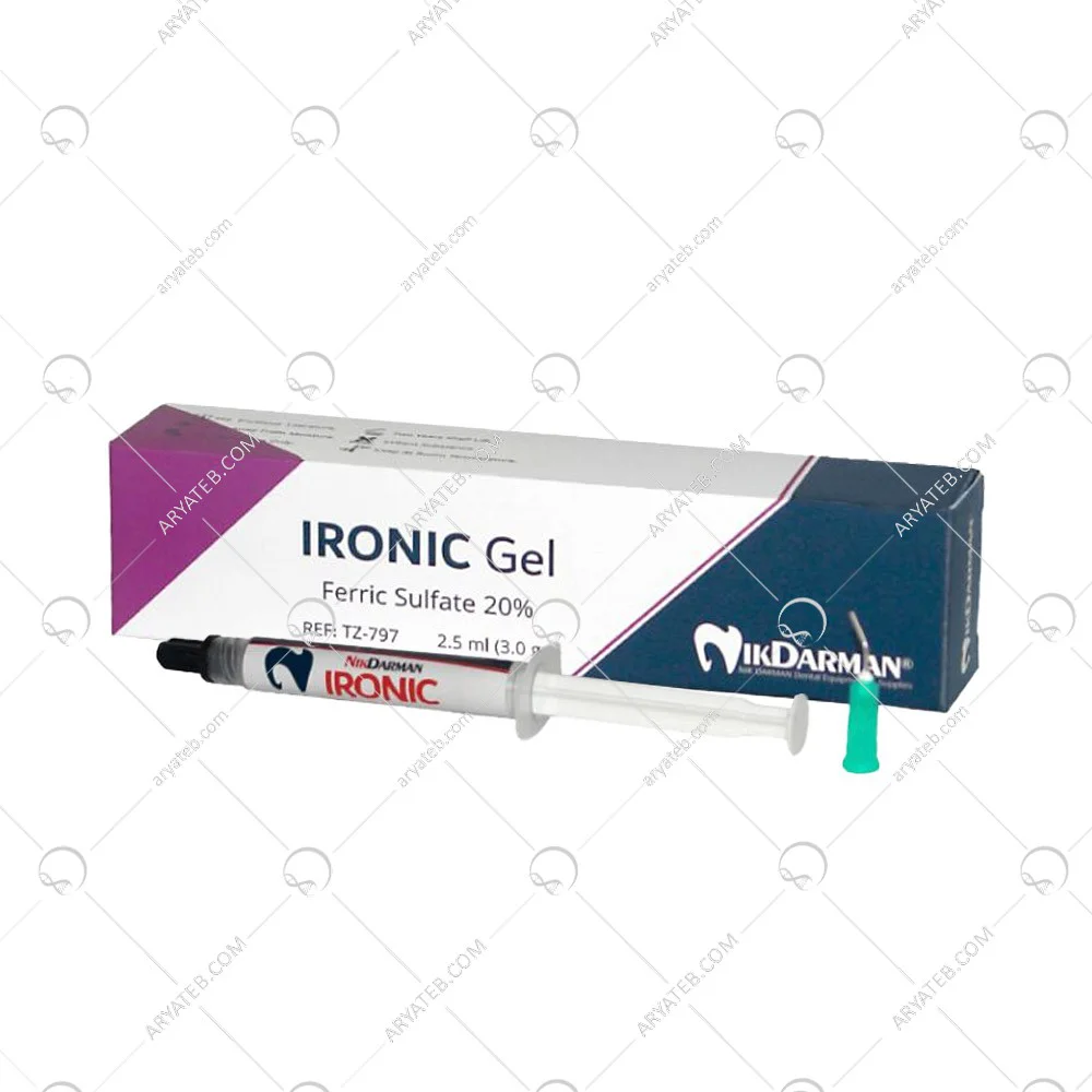 ژل انعقاد خون نیک درمان یک ژل لخته کننده خون است که حاوی 20 درصد سولفات آهن در یک ماتریکس چسبناک محلول در آب است. این محصول با فرمولاسیون انحصاری نیک درمان دارای PH تقریبی 1 می باشد، بنابراین این محصول حاوی معرف های مخصوص به منظور نرم شدن عملکرد و محافظت از بافت های سخت و نرم دهان می باشد. در مقایسه با هموستات های مبتنی بر کلرید آلومینیوم، ایرونیک خونریزی را در چند ثانیه متوقف می کند، زمان درمان را کاهش می دهد و آلودگی مایع سلولی را برای ایجاد پیوند بهینه حذف می کند.
