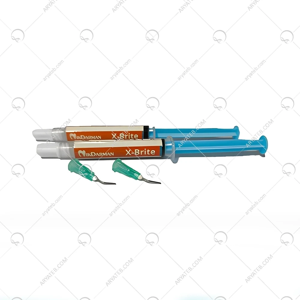بستهبندی حرفهای: ژل X-Brite معمولاً در سرنگهای تکبیمار ارائه میشود که استفاده از آن را در مطب آسان و بهداشتی میکند.