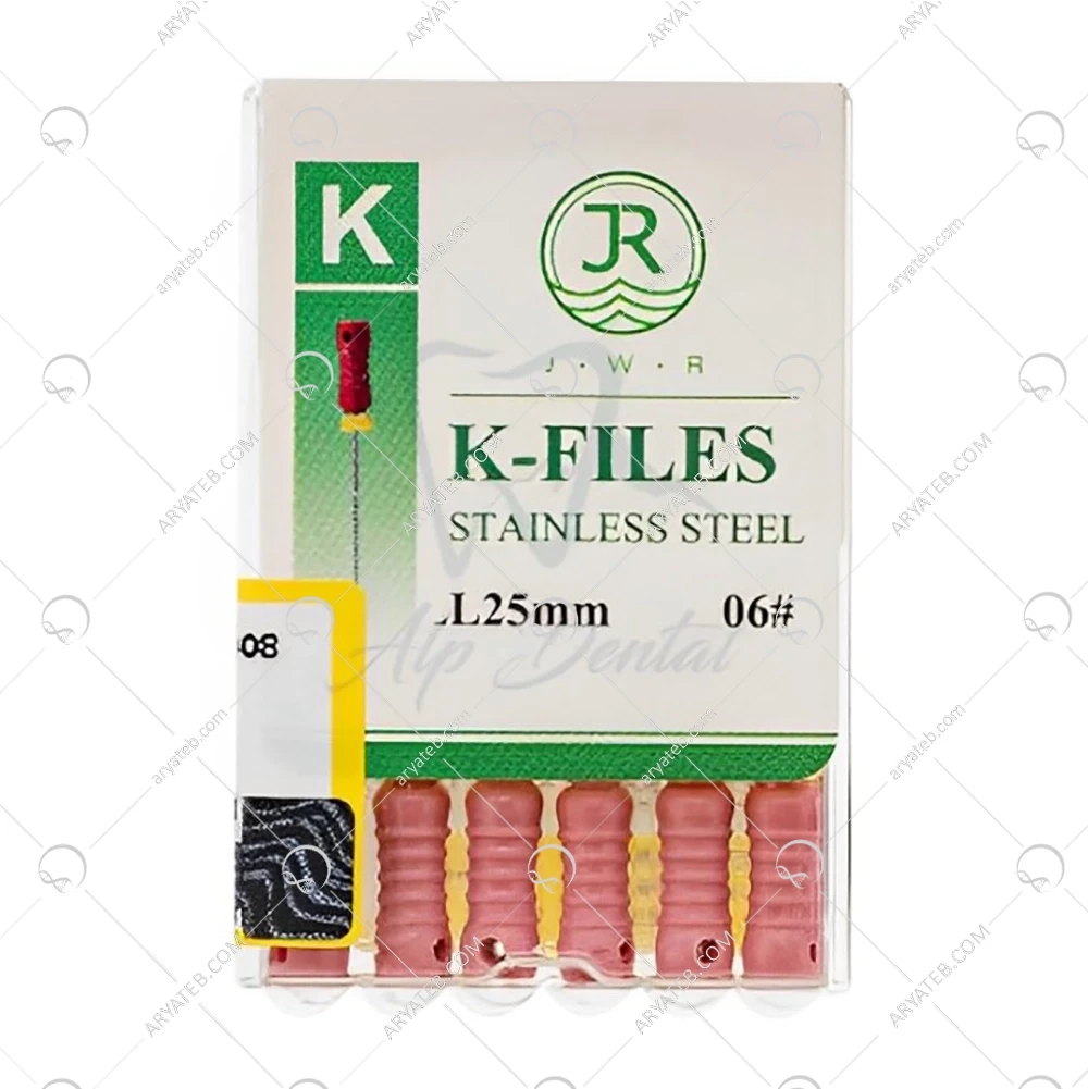 کا فایل JWR معمولاً از فولاد ضد زنگ با کیفیت بالا ساخته میشود تا در برابر استریلیزاسیون مقاوم باشد. این فایل دارای یک دسته ارگونومیک و یک بدنه مخروطی شکل است که در طول آن برشهای مثلثی با زاویه خاصی ایجاد شده است. اندازه و شکل این برشها بسته به کاربرد فایل متفاوت است.