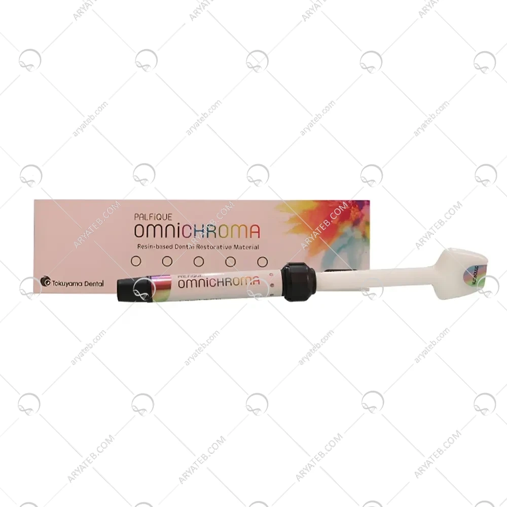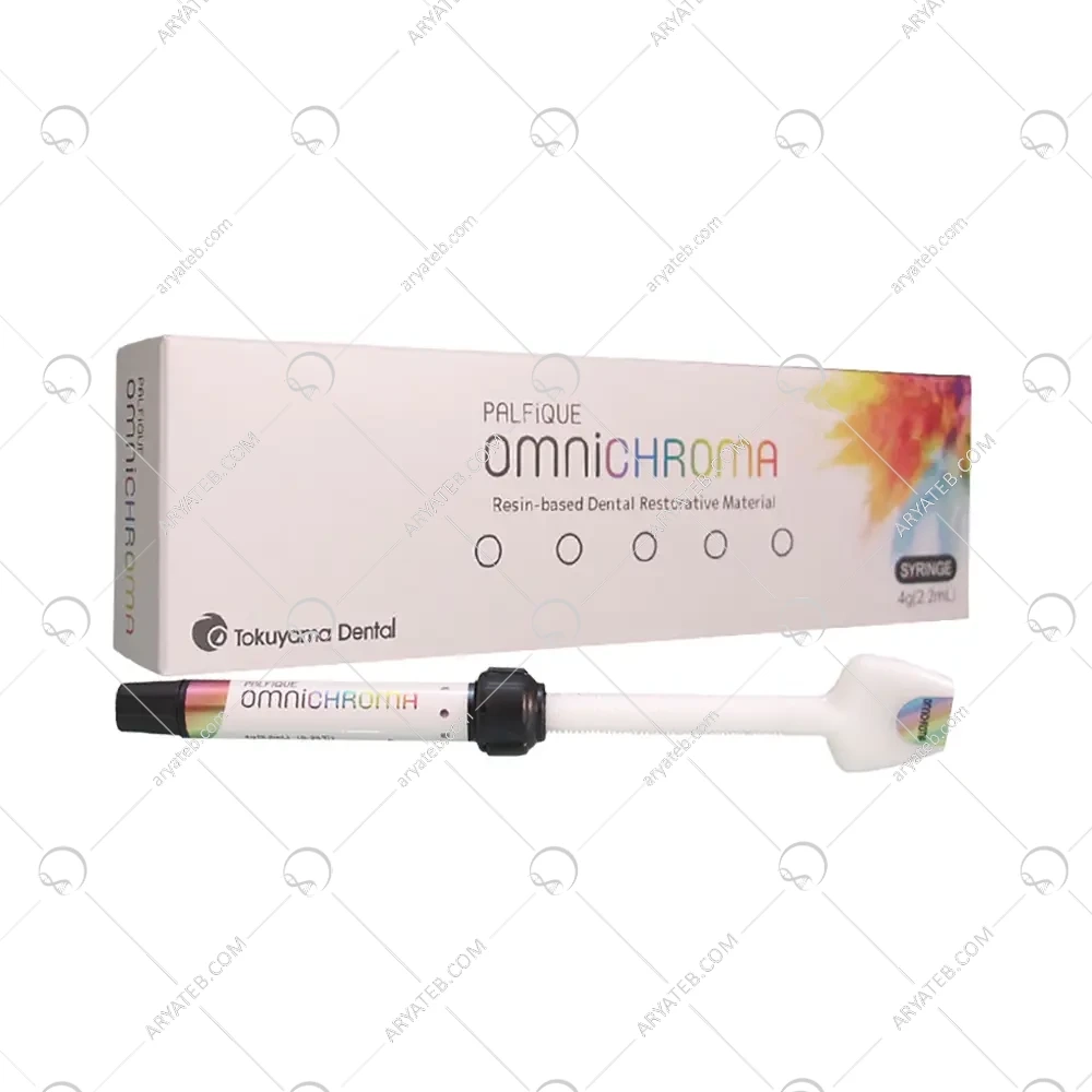 کامپوزیت تک رنگ اومنی کروما برای ترمیم مستقیم دندان های قدامی و خلفی و کلاس های نرمال 1، 3، 5، 2 و کلاس های 4 و 2 با تخریب بالا (باید از بلوک کننده استفاده شود) و اصلاح و ترمیم پرسلن/کامپوزیت و بسته شدن دیاستما مناسب است. از ویژگی های این کامپوزیت می توان به استحکام نانوهیبرید، استحکام بسیار بالا، حمل آسان و راحت و صیقل پذیری بسیار بالای آن اشاره کرد. این کامپوزیت خاصیت تطبیق دندان های طبیعی دقیقاً مانند دندان های طبیعی را دارد و تنها با یک رنگ، همه رنگ ها را پوشش می دهد (به جز استفاده به عنوان کامپوزیت روکش)، دلیل این سازگاری با کامپوزیت دندانی، نحوه جذب و میزان و میزان آن است. مقدار نور منعکس شده