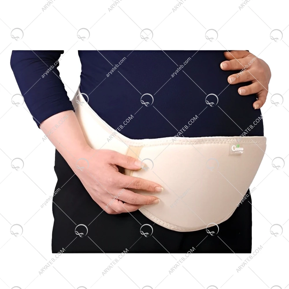 1- ابتدا بخش شکمی کمربندبارداری را زیر شکم قرار داده، سپس آنرا به حالتیکه راحت باشید تنظیم و محکم کنید.