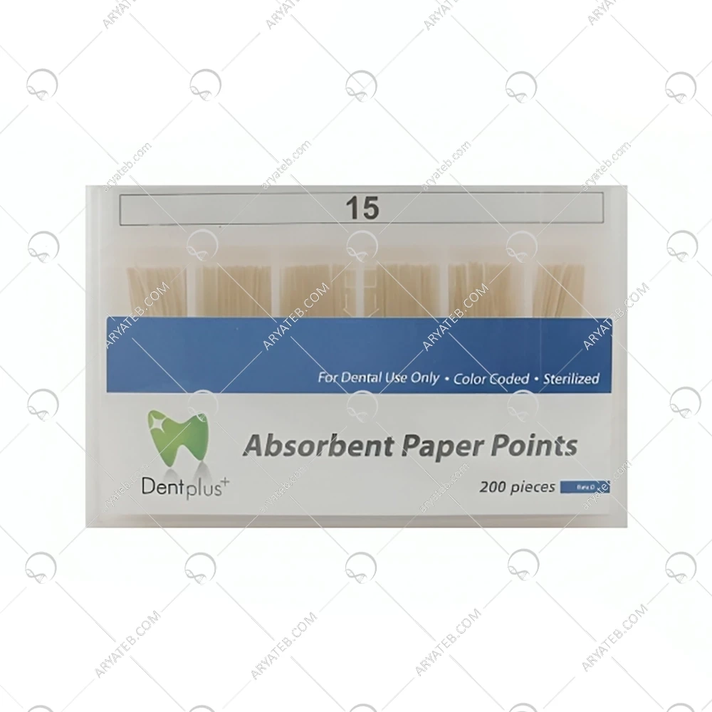 کن کاغذی دنت پلاس نام دیگر آن مخروط جاذب است شبیه گوتاپرکا به صورت دستی با سیم پیچ و لیزر اندازه گیری می شود و طول های 16، 18، 19، 20، 22 و 24 میلی متر روی آن مشخص شده است و از ویژگی های آن می توان به بسته بندی نوک تیز به سمت استریل اشاره کرد. بسته بندی. برای کنترل عفونت و نقاط هماهنگی مواد کاملا اشباع. همچنین این قطعات باید به اندازه کافی قوی باشند تا به راحتی از کانال وارد و خارج شوند.