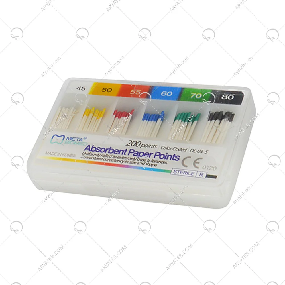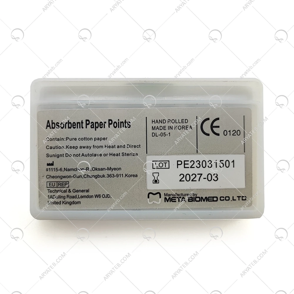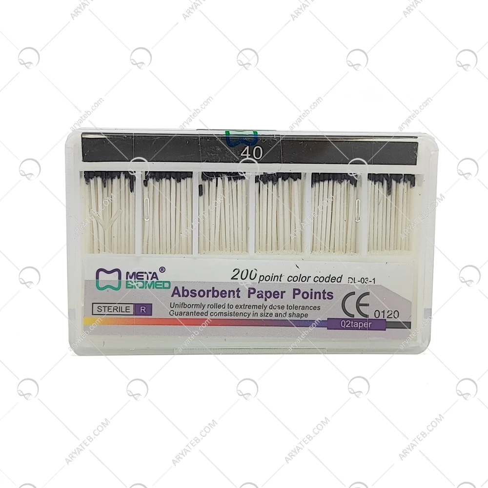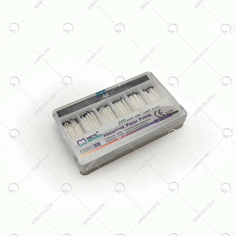 کن کاغذی متا 2 درصد مخروطی کاغذی با عرض و ضخامت های مختلف است که در درمان ریشه برای تخلیه و جذب مواد مایع در کانال ریشه استفاده می شود. نام دیگر مخروط کاغذی نقطه جذب است. در کلیپ زیر تا حدودی نحوه عملکرد آن نشان داده شده است.