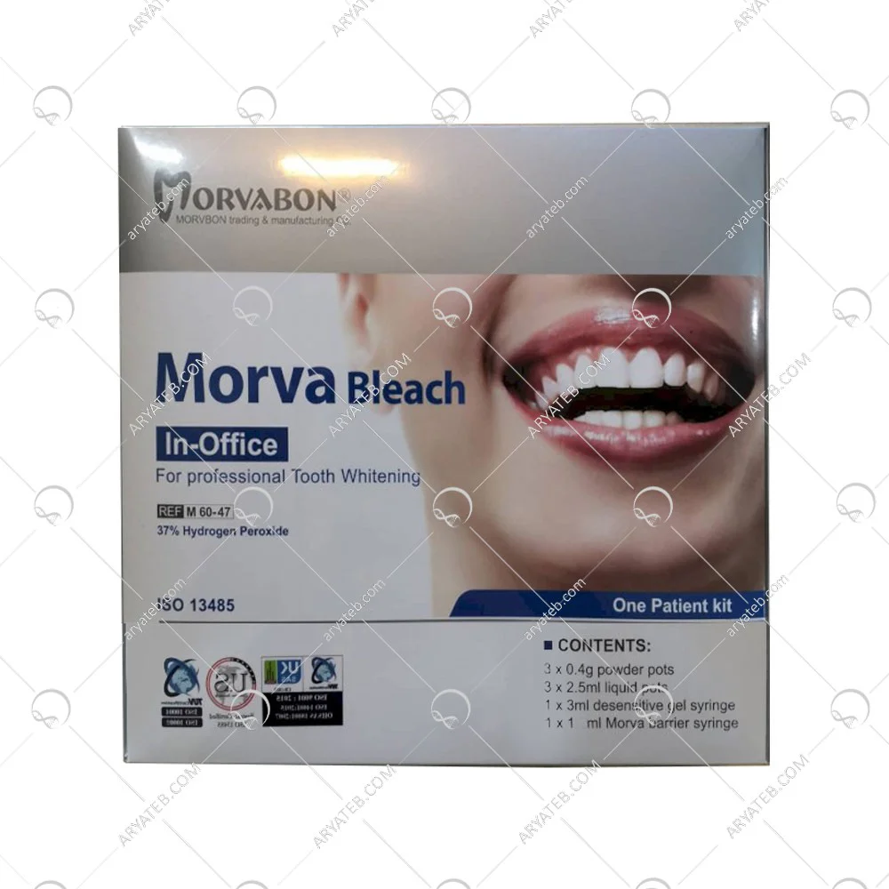 کیت بلیچینگ آفیس مروابن (Marvabene Office Bleaching Kit) یک محصول تخصصی برای روشنسازی دندانها است که بهویژه در مطب دندانپزشکی توسط دندانپزشکان استفاده میشود. این کیت بهطور ویژه برای بهبود رنگ دندانها و ایجاد لبخند روشنتر طراحی شده است و شامل مواد و ابزارهایی است که بهطور مؤثر نتایج بلیچینگ را در زمان کوتاهتری فراهم میکند.