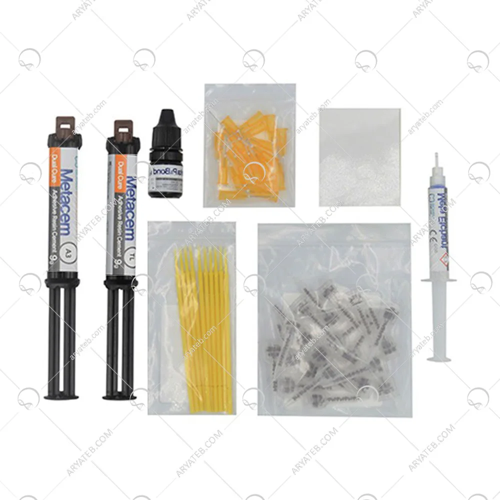 این کیت شامل دو جزء اصلی است: یکی سمان رزینی که به عنوان چسب دندانپزشکی برای اتصال مواد ترمیمی به دندانها عمل میکند و دیگری مایع فعالکننده که به سمان کمک میکند تا به سرعت و به طور کامل سفت و سخت شود. ترکیب این دو جزء باعث ایجاد یک اتصال قوی و پایدار بین مواد ترمیمی و دندانها میشود و به کاهش خطر شکست و آسیب در نواحی ترمیم شده کمک میکند.