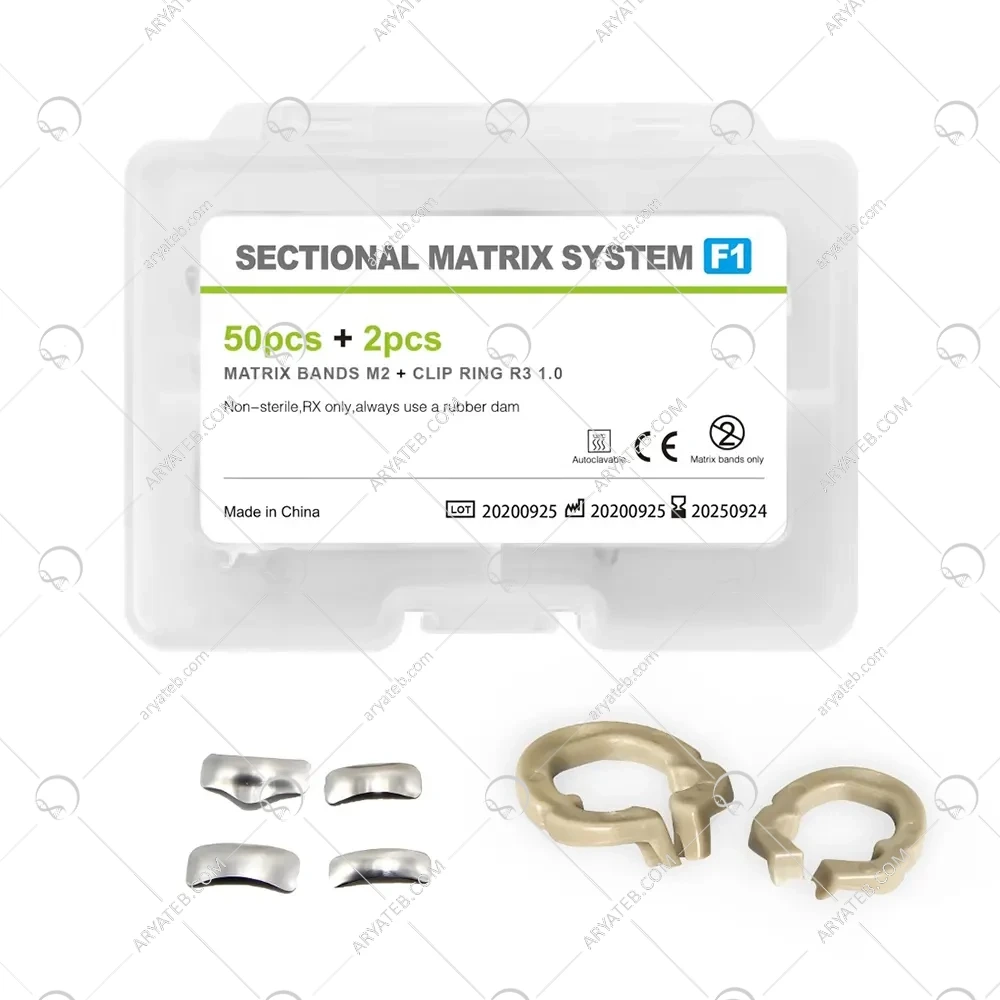 رینگهای رزینی این کیت بهطور خاص برای حفظ و نگهداری نوار ماتریکس در محل خود طراحی شدهاند. این رینگها بهراحتی در محل قرار میگیرند و با اعمال فشار مناسب، نوار ماتریکس را در جای خود ثابت نگه میدارند. این ویژگی باعث میشود که فرآیند ترمیم بدون نگرانی از جابجایی نوار یا نشت مواد ترمیمی انجام شود.