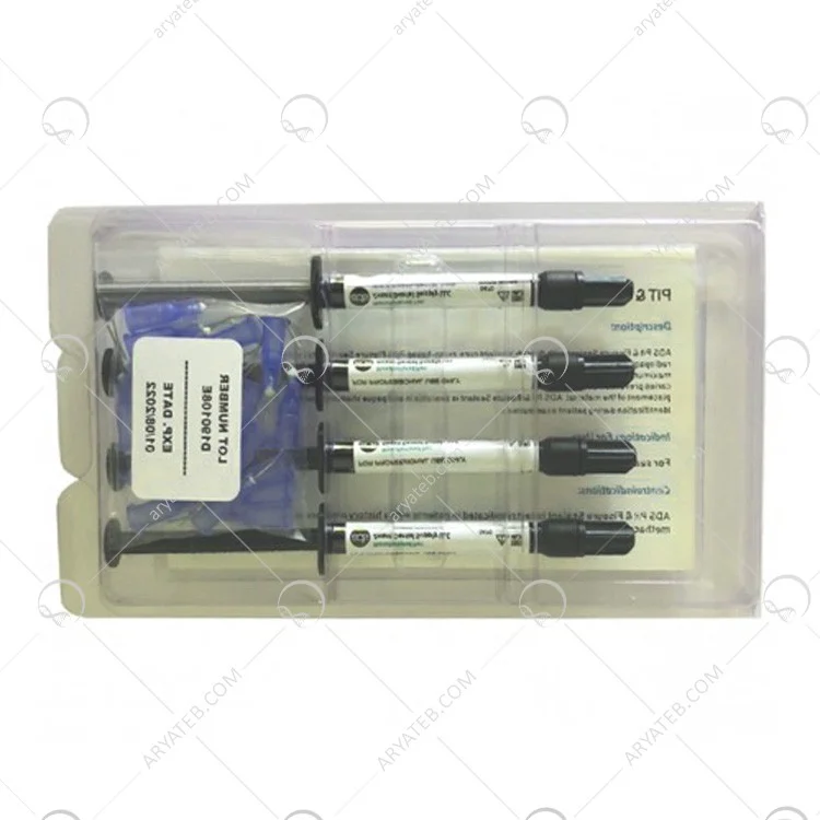 کیت فیشور سیلانت برای تبلیغات لایت کیور به صورت 4 سرنگ 1.5 گرمی با 20 نوک ارائه می شود.