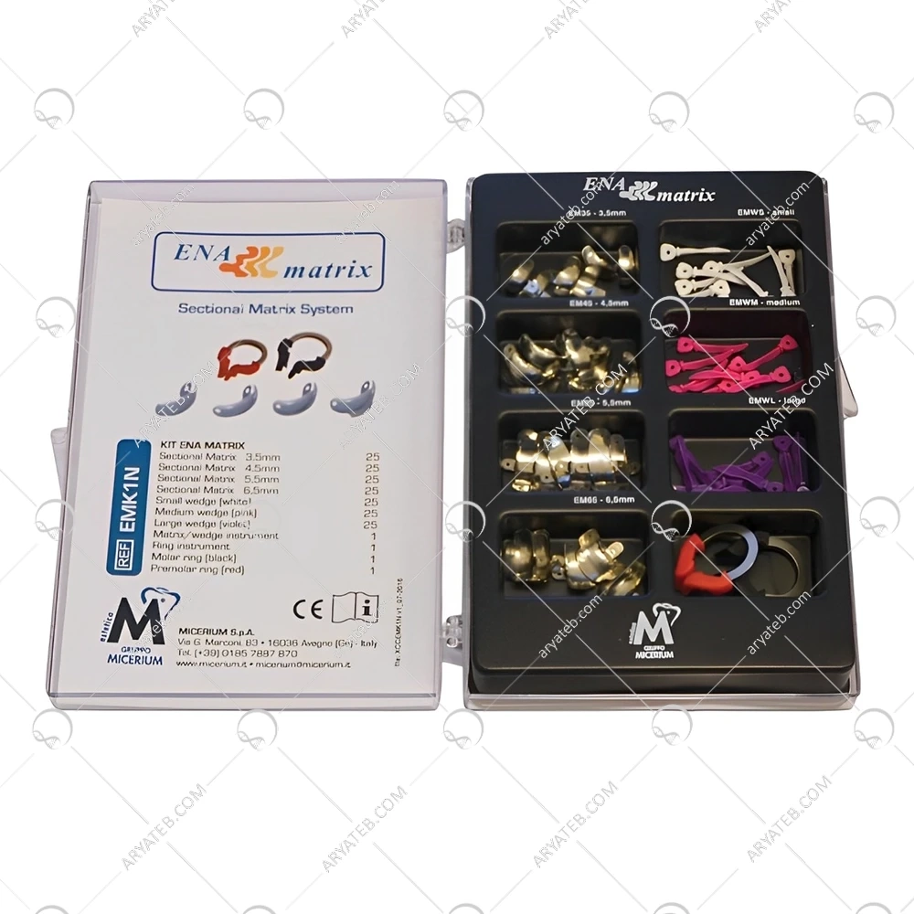 - ابزارهای جانبی: این کیت ممکن است شامل ابزارهای جانبی دیگری مانند فورسپس برای قرار دادن حلقهها و پنس برای کار با نوارهای ماتریکس باشد.