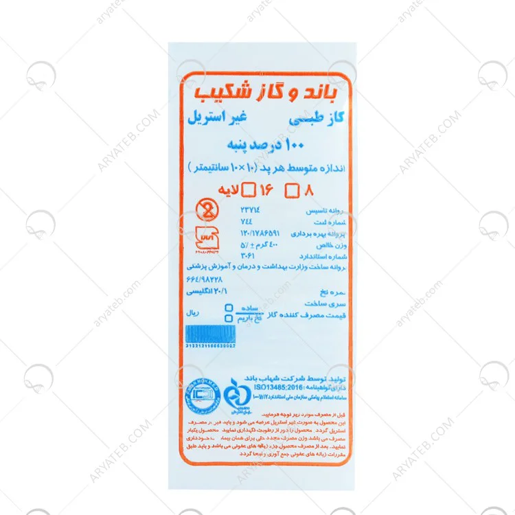 گاز طبی 8 لایه شکیب ، نوعی گاز پارچه ای نازک و شفاف از جنس پنبه و الیاف طبیعی بوده و دارای بافتی باز و درشت میباشد. این محصول غالباً برای شستشو، پانسمان و محافظت از زخم بکار میرود. علیرغم اینکه این محصول در ابتدا غیراستریل میباشد، ولی معمولاً پس از خریداری توسط بیمارستانها استریل شده و برای کاربردهای گوناگونی از جمله جذب خون و پسابهای خونی، آغشته کردن سطح زخم به مواد ضدعفونی و همچنین قرار دادن آن روی گاز استریل به منظور پانسمان بکار میرود.