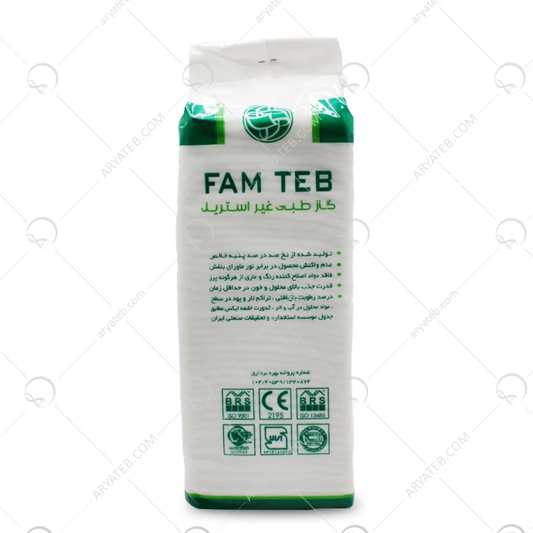 گاز طبی یا غیر استریل یکی از لوازم پر مصرف در پزشکی است ،گاز غیر استریل در جراحی های ساده برای شست و شوی زخم و جذب ترشحات زخم و حتی در منازل کاربرد زیادی دارد و از این گاز غیر استریل در انواع مراکز درمانی و پزشکی و بیمارستان ها استفاده فراوان می شود ؛گاز طبی فام طب جذب بسیار بالای خون و محلول های ضد عفونی کننده دارد زیرا از نخ پنبه خالص صد در صد تهیه و تولید شده است ؛گاز غیر استریل فام طب کاملا ضد حساسیت است و با عبور جریان هوا موجب بهبود هرچه سریع تر زخم ها می شود و از هر گونه صدمه مکانیکی جلوگیری به عمل می اورد ؛گاز طبی غیر استریل فام طب یک بار مصرف است و در شرایط کاملا استاندارد و بهداشتی تولید می شود و عاری از مواد شیمیایی و هرگونه الودگی فیزیکی است و قبل و بعد مصرف هیچ بویی ندارد ؛ابعاد گاز طبی غیر استریل ۱۰×۱۰سانتی متر است و به شکل مربع تولید می شود ؛برای زخم های عمیق از تعداد بیشتری گاز استفاده شود این گاز غیر استریل و کیلویی بوده و ساخت کشور ایران می باشد .
