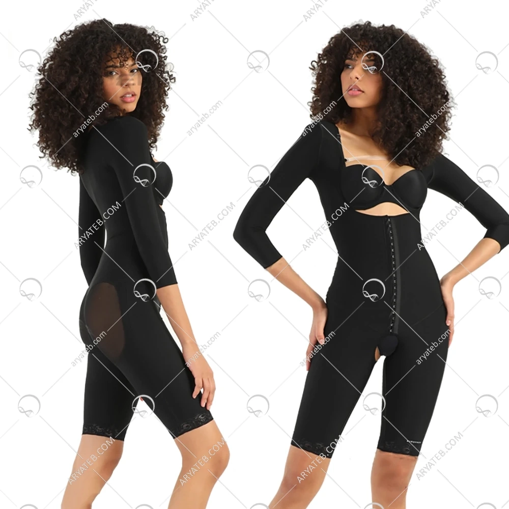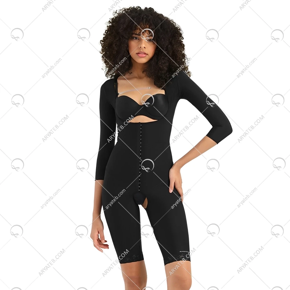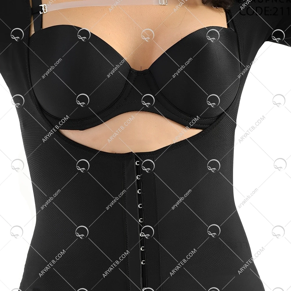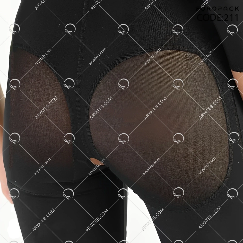 - گن آستیندار، پادار، بدون پوشش سینه یوروپک مدل LP211 به دلیل پوشش گسترده (بازو، شکم، ران، باسن)، برای فرمدهی جامع زیر لباسهای مجلسی یا پس از جراحیهای گسترده مانند لیپوساکشن چندین ناحیه مناسب است.