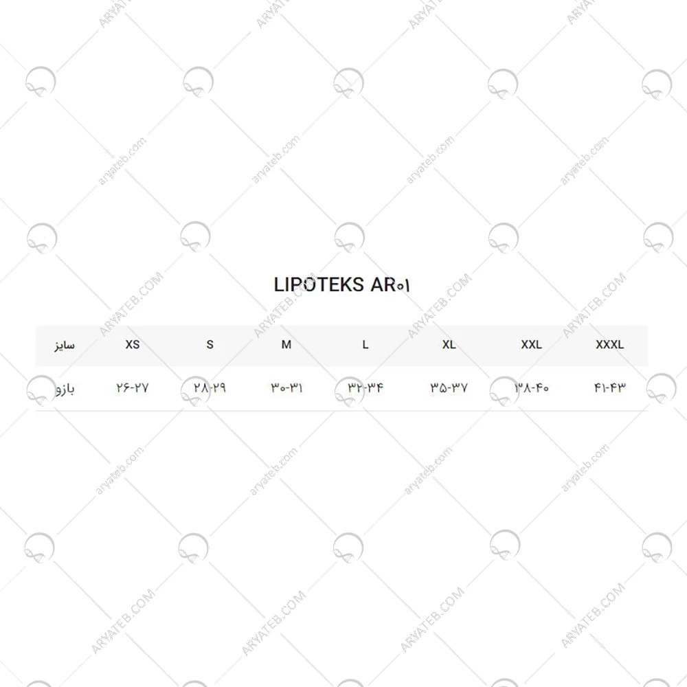 - محصول تخصصی: گن بازو سه ردیف قزن از پشت لیپوتکس مدل AR01 به عنوان یک پوشاک فشردهسازی تخصصی برای بیماران پس از جراحیهای زیبایی بازو.