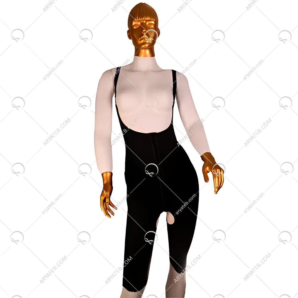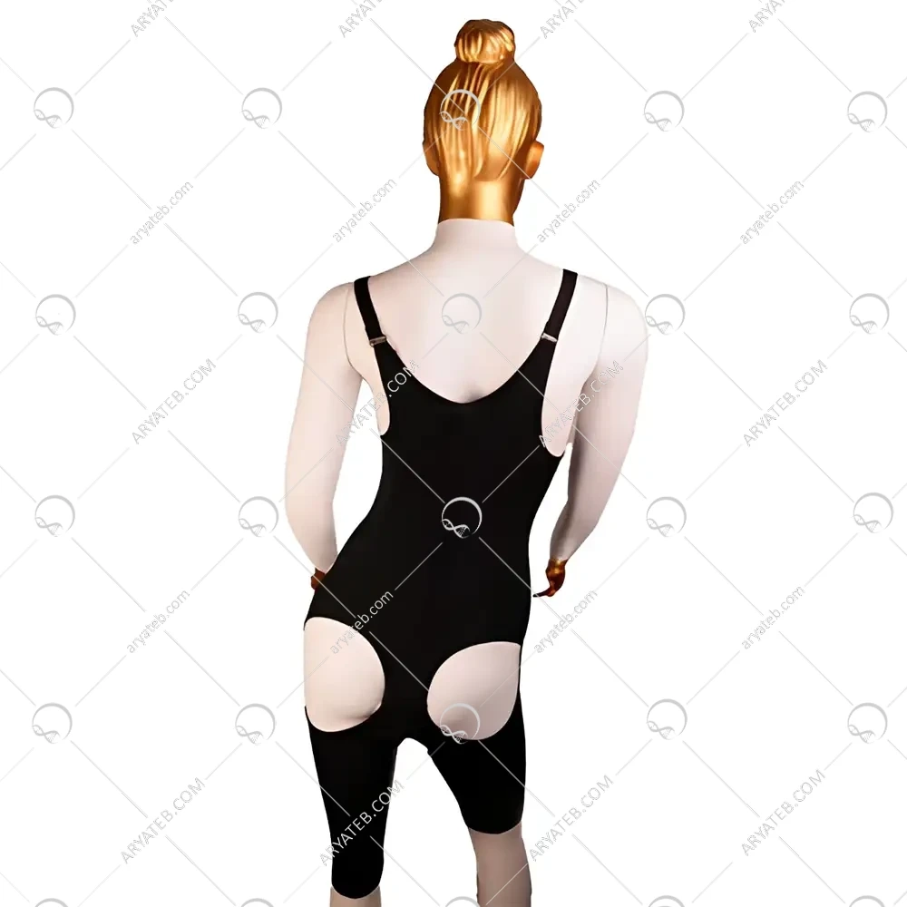 - طراحی "پشت باز": مهمترین ویژگی ظاهری؛ وجود یک حفره یا فضای بدون فشار در ناحیه باسن برای محافظت از چربی منتقل شده. این قسمت ممکن است دارای پارچه بسیار نازک یا ساختار مشبک باشد.