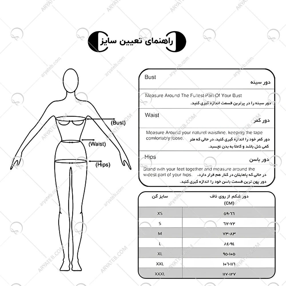 - انتخاب سایز: حتماً قبل از خرید دور کمر خود را اندازهگیری کنید تا سایز مناسب را انتخاب نمایید.