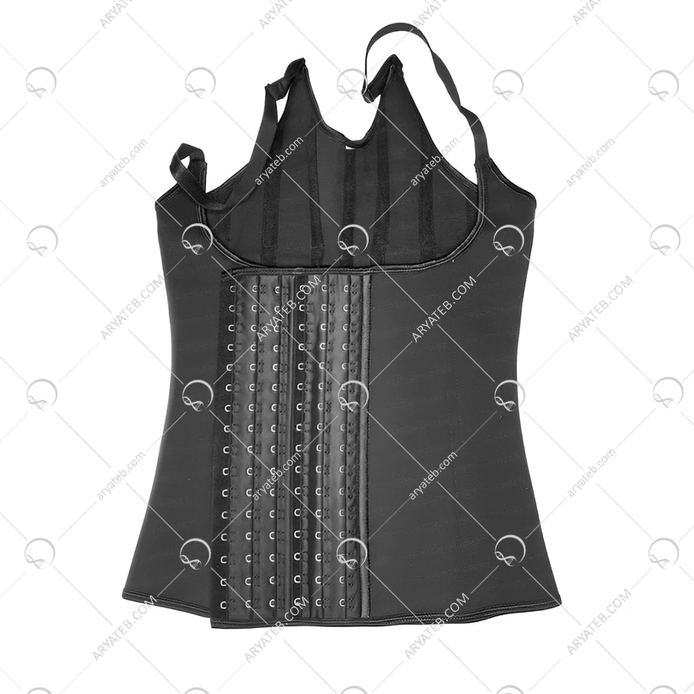 - تنظیم و صاف کردن: پس از بستن تمام غزنها، گن را به آرامی روی بدن تنظیم کنید تا از صاف بودن و عدم وجود چین و چروک اطمینان حاصل شود. مطمئن شوید که فشردهسازی به طور یکنواخت در سراسر ناحیه شکم و کمر اعمال میشود.