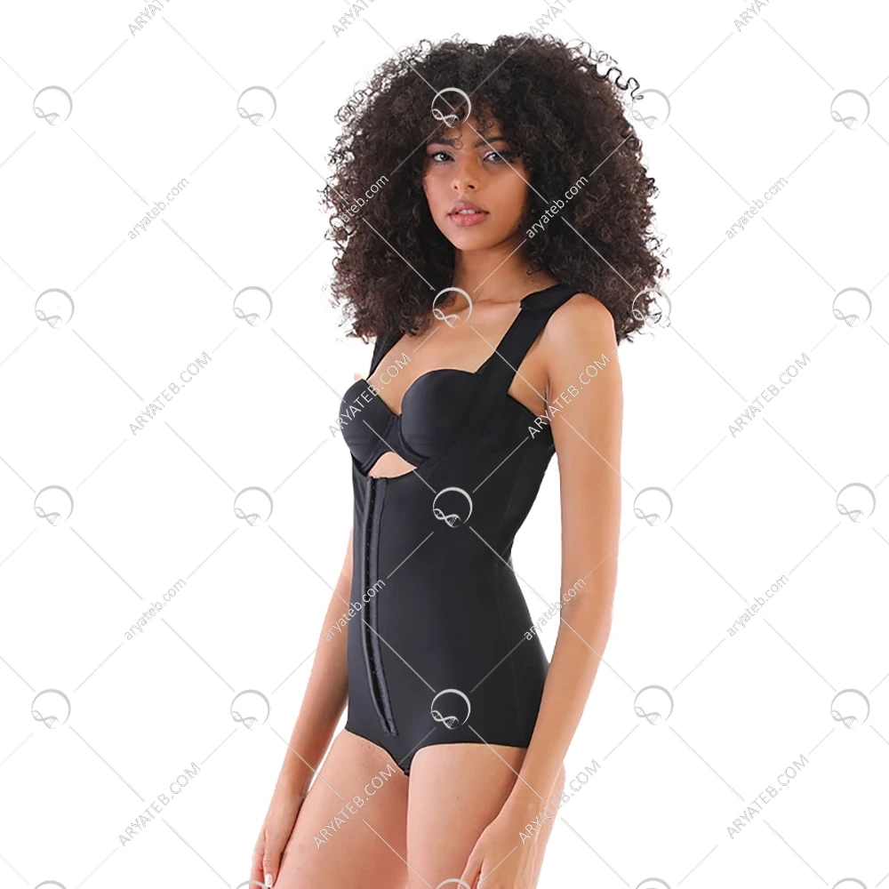 - گن دو لایه در ناحیه شکم، بند سرشانه پهن و قابل تنظیم،فاق قزن دار، دارای سه ردیف قزن از جلو (امکان تغییر یک سایز)
