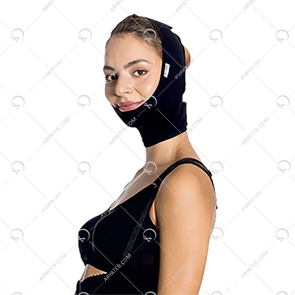 - پشتیبانی بیشتر: پوشاندن ناحیه اطراف گوش و پشت فک میتواند به ایجاد فشار یکنواختتر در کل ناحیه چانه و گردن کمک کند، که در برخی موارد پس از جراحیهای گستردهتر مفید است.