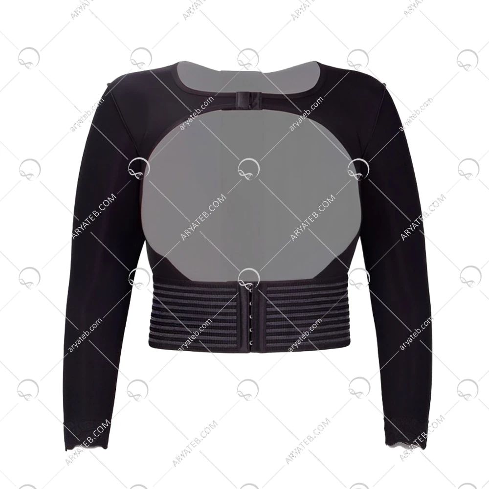- طراحی یکپارچه: گن به طور کامل بازوها را پوشش میدهد و برای ایجاد تقارن در ناحیه بازو و پشت بعد از عمل لیپوساکشن یا براکیوپلاستی بسیار موثر است.