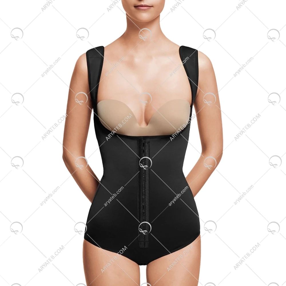 گن زنانه ووئه مدل 3007E با طراحی خاصی که از زیر سینه شروع میشود و شکم را در بر میگیرد، به شما کمک میکند تا منطقه عمل شده را به خوبی حمایت کنید. این حالت شورتی به شما کمک میکند تا احساس راحتی و آزادی در حرکت داشته باشید.2. پوشش پشت بدن