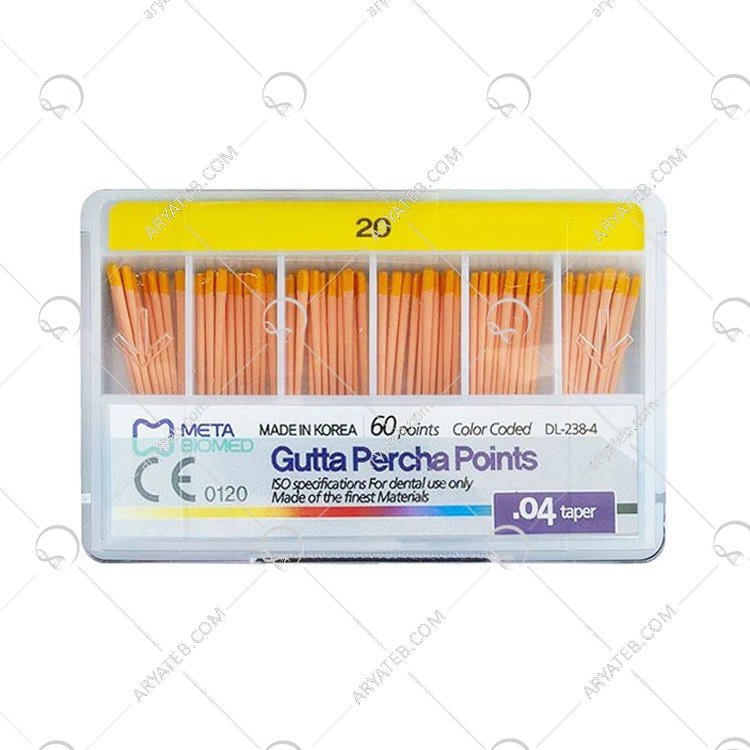 گوتا پرکا سایز 20 Meta با غلظت 4 درصد، انتخابی برتر برای دندانپزشکان است که نیاز به پر کردن کانالهای ریشه با دقت بالا دارند. این محصول با ترکیب منحصر به فردی از مواد با کیفیت و غلظت بهینه، به طور خاص برای کانالهای بزرگتر طراحی شده است. با استفاده از این گوتا پرکا، میتوانید به نتایج درمانی مؤثر و پایدار دست یابید و تجربهای راحت و بدون عارضه برای بیماران فراهم کنید.