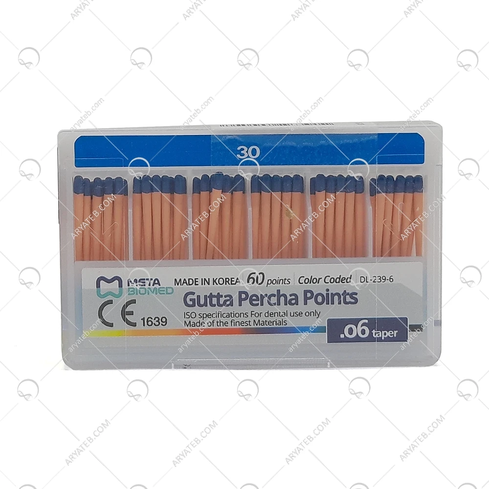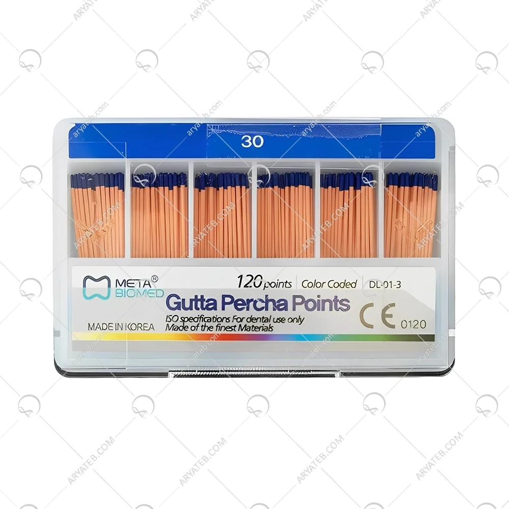 گوتا پرکا سایز ۳۰ متا ۲ درصد یک ماده پرکاربرد در دندانپزشکی برای پرکردن کانالهای ریشه است. این نوع گوتا پرکا، با درصد خلوص ۲ درصد، به طور خاص برای تأمین کیفیت بالا و دوام طولانی مدت طراحی شده است. گوتا پرکا از موادی با ویژگیهای انعطافپذیر و مقاوم در برابر تغییرات دما ساخته شده که به راحتی میتوان آن را در داخل کانالهای ریشه قرار داد و فرم داد.